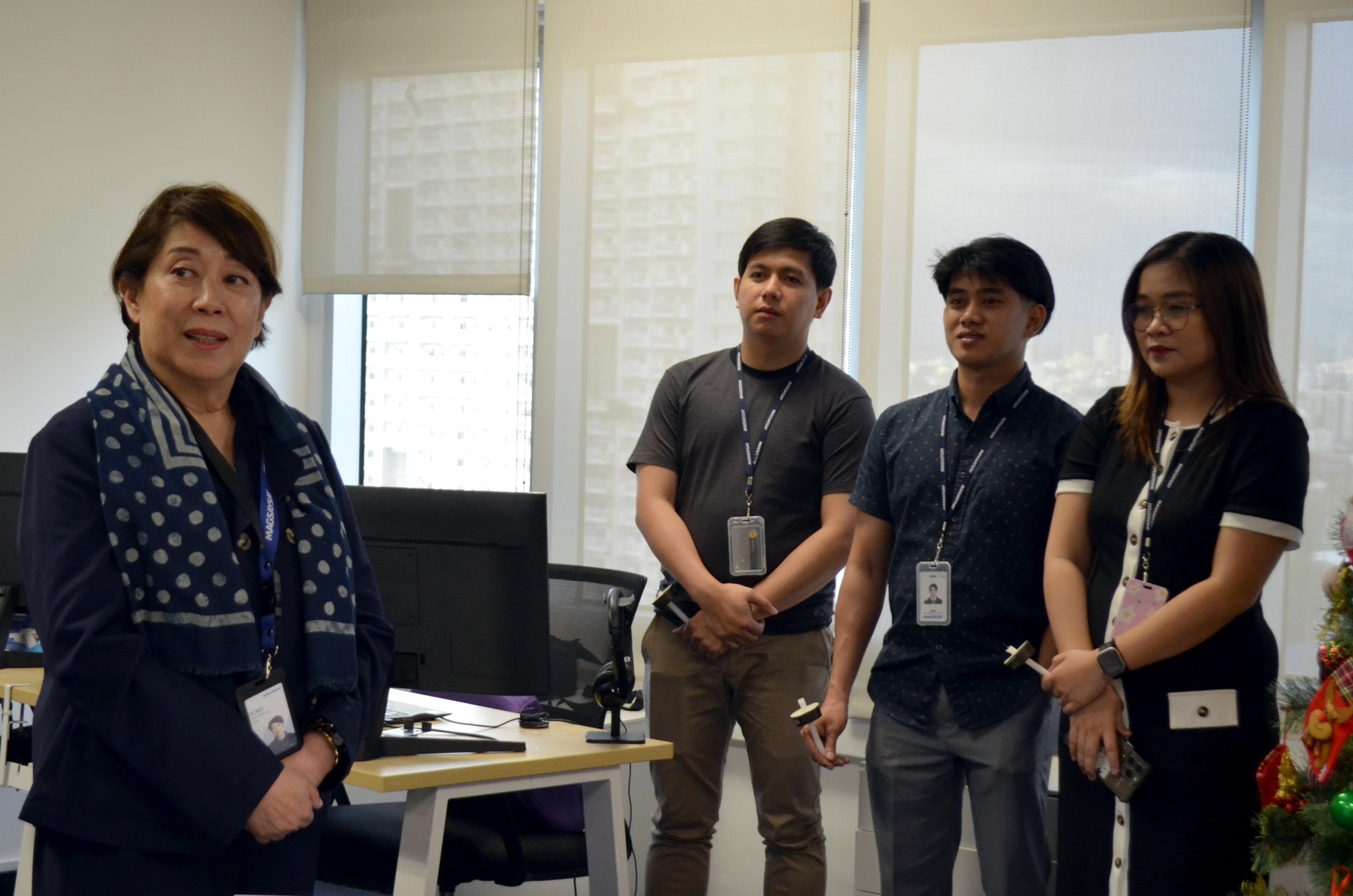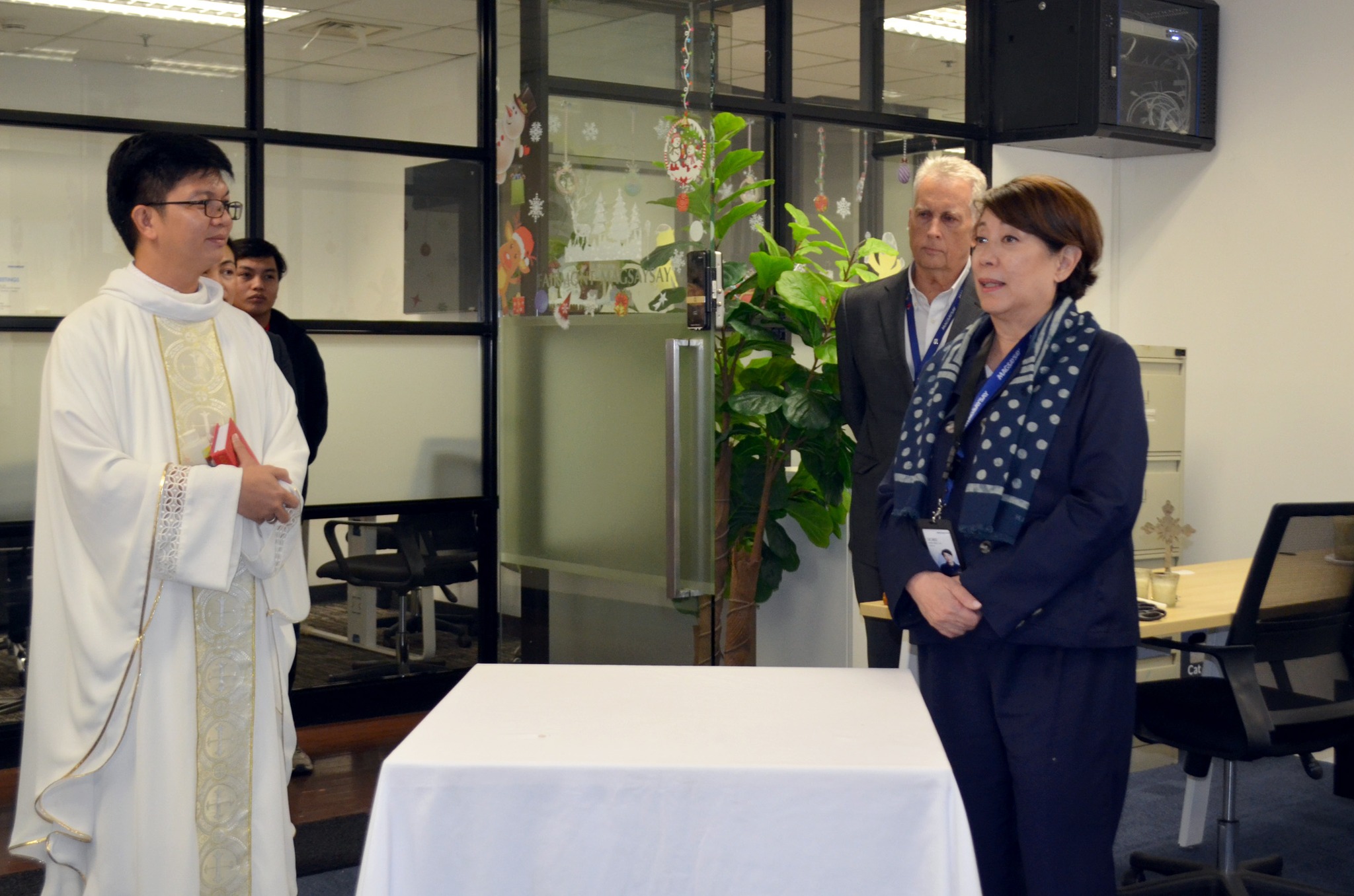 After her message, the Ribbon Cutting Ceremony was held led by Doris Magsaysay Ho, Michele Francisco, Ashish Kambo, Sonjay Bairagi and GPM President, Erik M. Nielsen. The ribbon-cutting signified the official opening of the new office and the beginning of a strengthened chapter of cooperation. The office premises and next door meeting room as well as the coins were blessed by Father Juan Piarist Nasataya who offered a prayer while the guests holding lit candles, followed by the traditional coin-throwing ceremony, symbolizing prosperity, good fortune, and the hope for continued success for everyone who will work and collaborate in the new office.